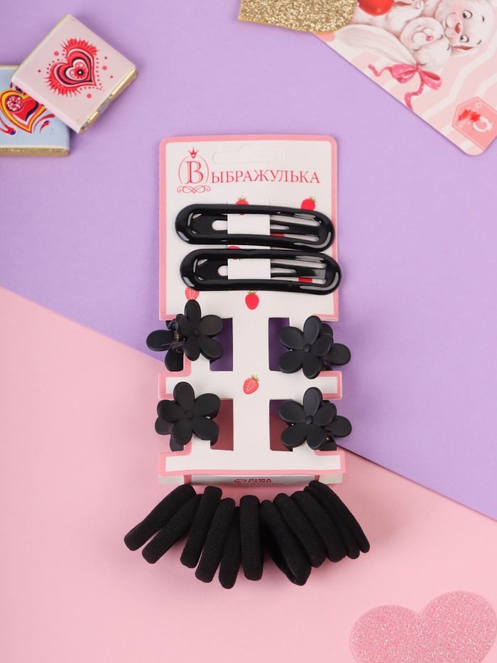Набор для волос «Эстер»: 10 резинок, 2 см, 4 краба 2 см, 2 невидимки 6 см, цветок, чёрный