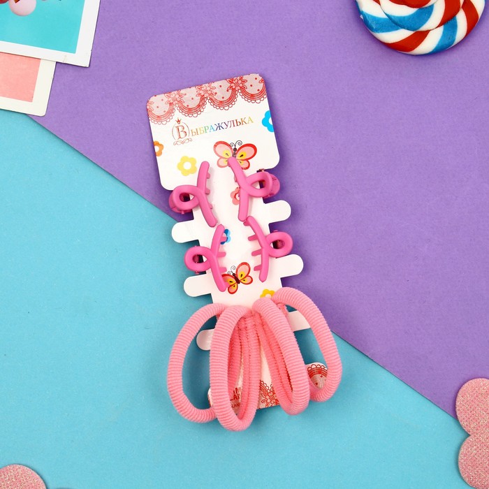 Набор для волос «Мира», 12 шт.: 4 невидимки 5 см, 8 резинок 3.5 см, розовый