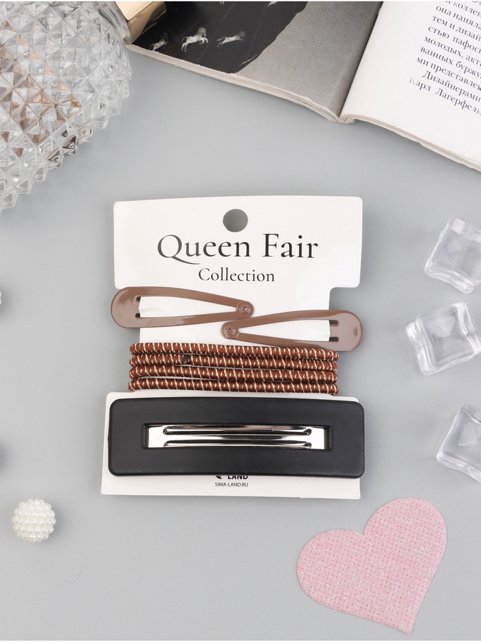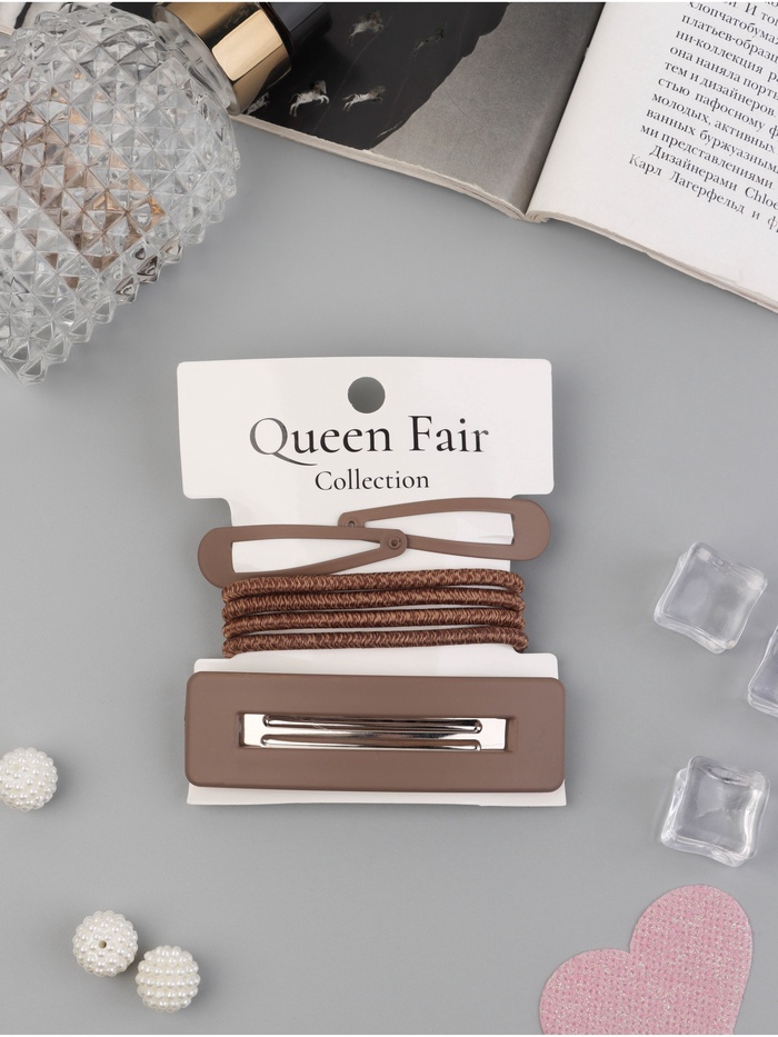 Набор для волос QF «Флоренс лео», 4 резинки 6.5 см, автомат 8 см, 2 невидимки 4.5 см, коричневый