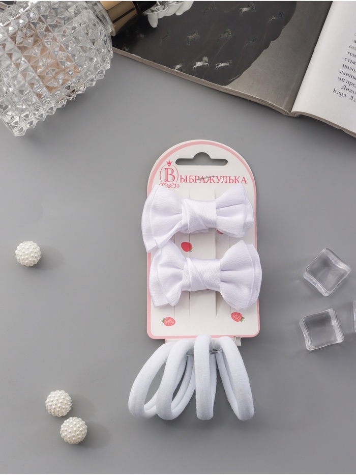 Набор для волос «Галея», 3 резинки 5 см, 4 крабика 2.5 см, петелька, белый