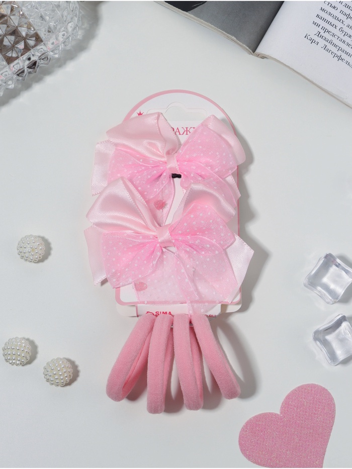 Набор для волос "Нежность" (4 резинки, 2 зажима, 2 невидимки) милашки, 4 и 4,5 см, розовый
