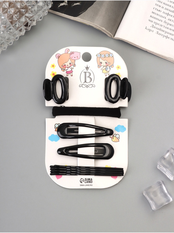 Набор для волос «Вивьен», 2 резинки 5.5 см, 8 невидимок 5.5 см, краб 4 см, объём, чёрный