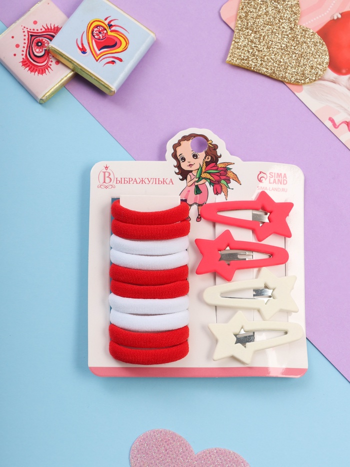 Набор для волос «Аделия»: 10 резинок 3 см, 4 невидимки 3.5 см, звезда, красный, белый