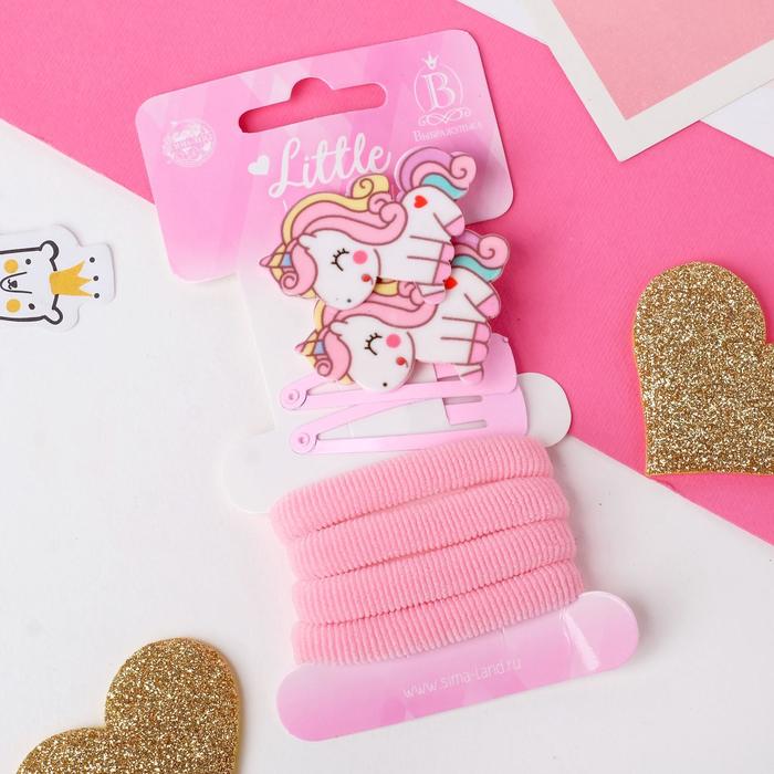 Набор для волос "Нежность" (4 резинки, 2 зажима, 2 невидимки) единорожки мини, 4 и 4,5 см, розовый 5