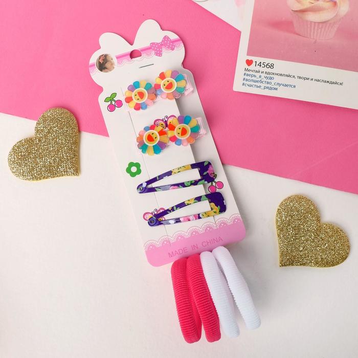 Набор для волос "Улыбка" (4 резинки, 2 зажима, 2 невидимки) солнышко мини