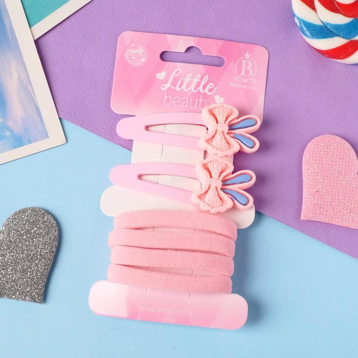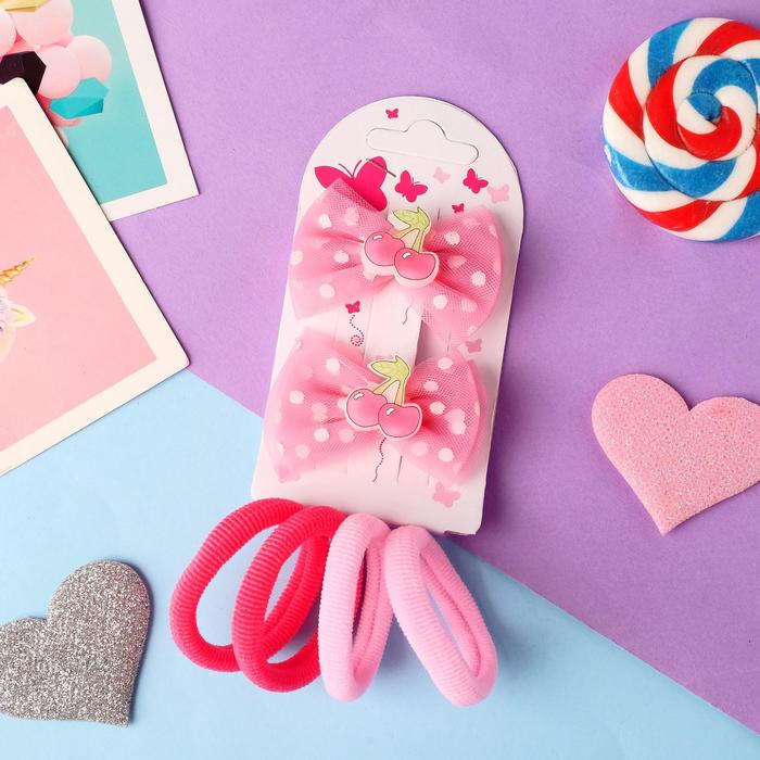 Набор для волос "Аврил" (4 резинки, 2 зажима) бантики ушки, 7х3 см, розовый