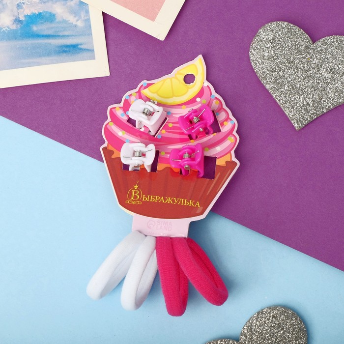 Набор для волос «Маленькая радость», 8 шт.: 4 резинки, 4 крабика, пироженка, бело-розовый