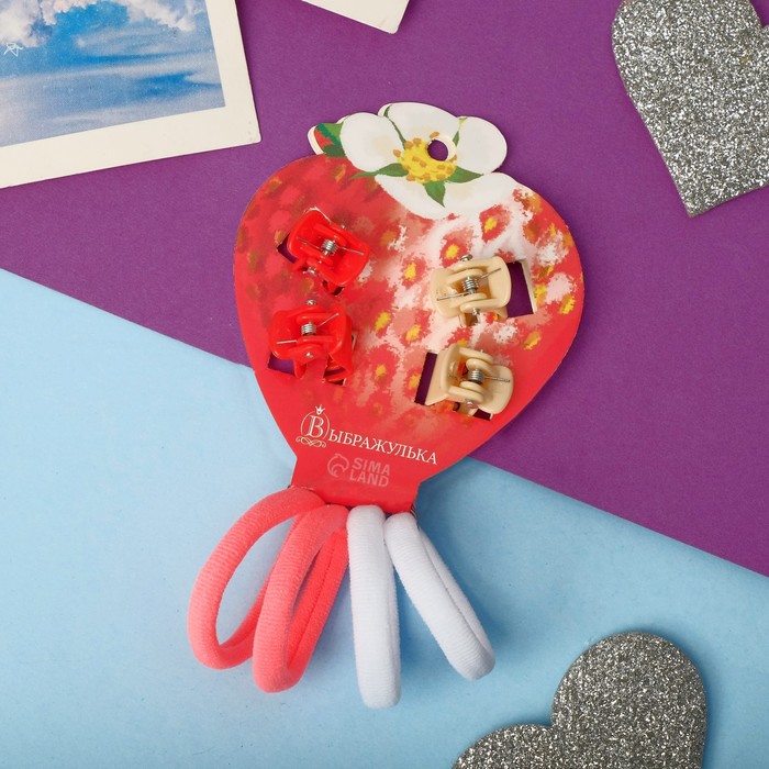 Набор для волос «Маленькая радость», 8 шт.: 4 резинки, 4 крабика, клубничка, красно-белый