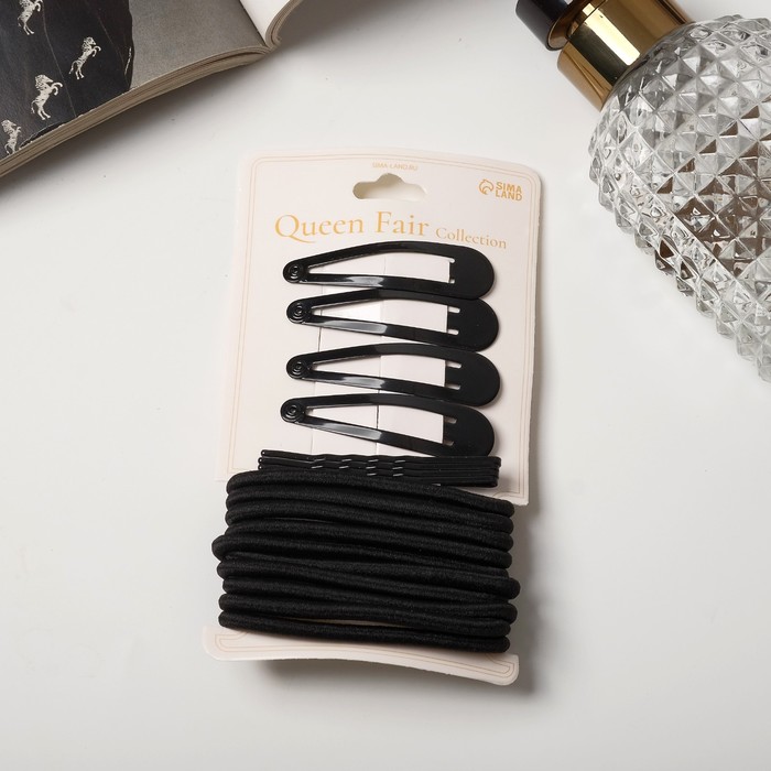 Набор для волос «Классика люкс», 10 резинок, 8 невидимок 4.5 см, чёрный