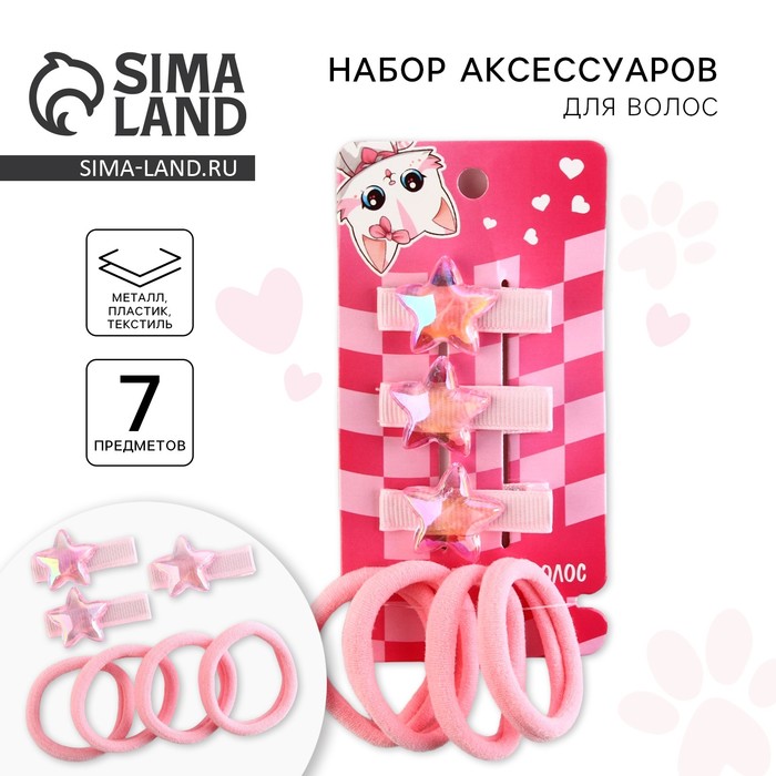 Набор для волос "Софи" (7 резинок, 2 невидимки) звёзды, розовый