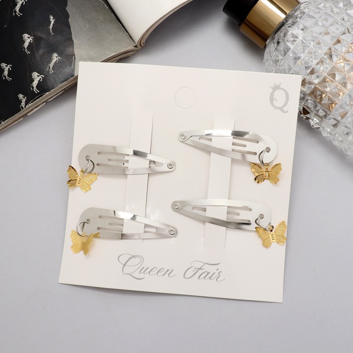 Невидимки для волос «Офелия», набор 4 шт., бабочка объём, 4.5 см, серебро