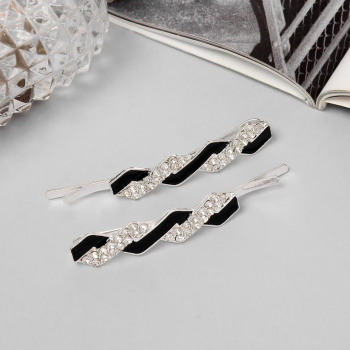 Невидимки для волос «Вивьен», набор 2 шт., камни классика, 5 см, серебро