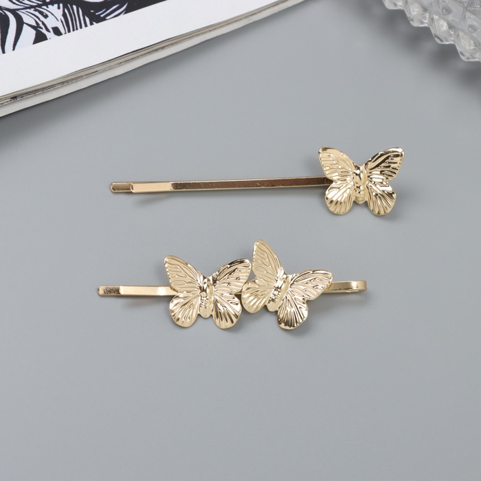 Невидимки для волос «Бенте», набор 2 шт., бабочка, 6 см, золото