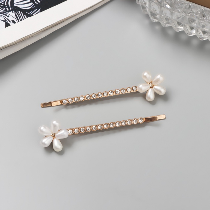 Невидимки для волос «Дилис», набор 2 шт., цветок, 6 см, золото