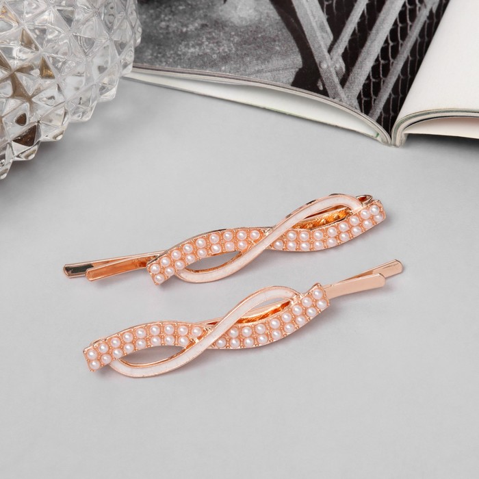 Невидимки для волос «Кэли», набор 2 шт., грация, 6 см, розовое золото