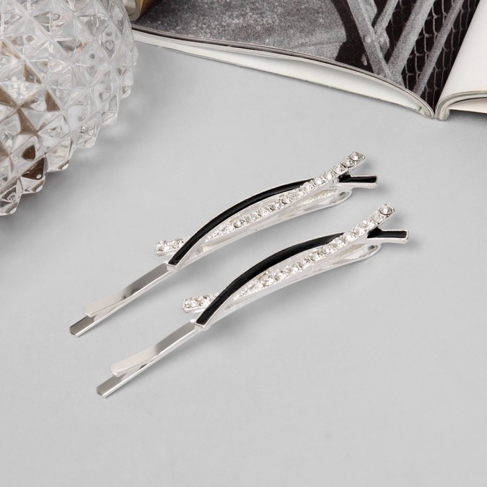 Невидимки для волос «Кэли», набор 2 шт., дуга, 6 см, серебро