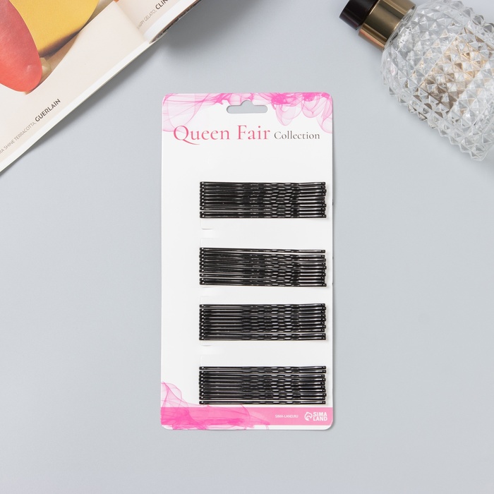 Невидимки для волос «Классика, с зубчиками», набор 40 шт., 7 см, волна, чёрные