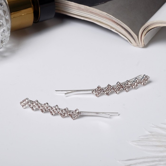 Невидимки для волос «Волшебный блеск», набор 2 шт., ромбы, 5.5 см, серебро
