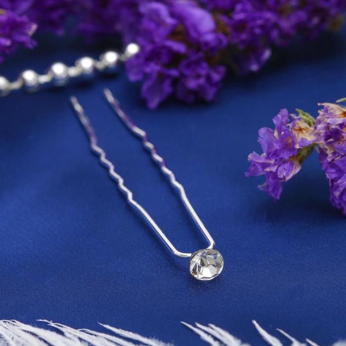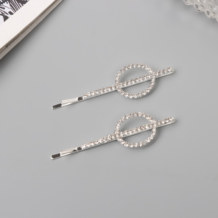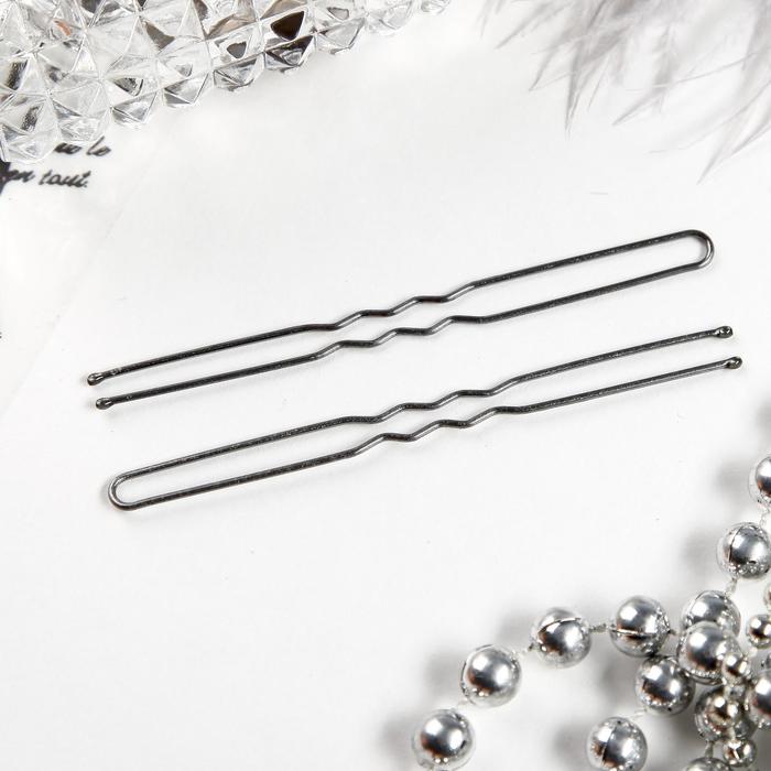 Невидимки для волос «Хайди», набор 2 шт., сверкание, 6 см, серебро