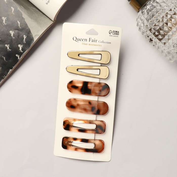 Невидимки для волос «Беатрис», набор 6 шт., пятнышки люкс, 5 см, золотисто-коричневые