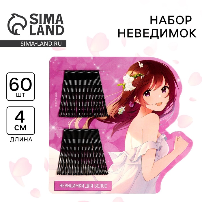 Невидимки для волос «Нежность» 60 шт, 4 см