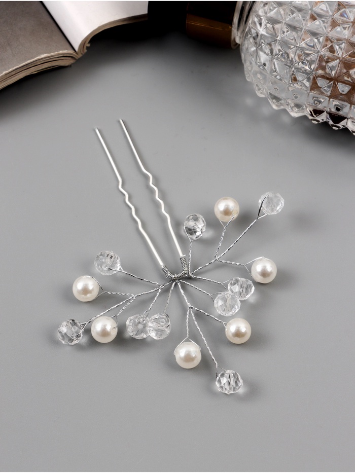 Шпилька для волос «Эмилия», шарики ассорти, 9×7 см, белая, прозрачная