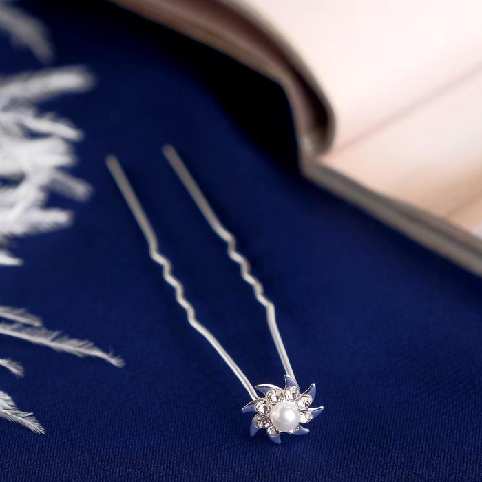 Шпилька для волос «Астра», с жемчужиной, 6.5 см, серебро
