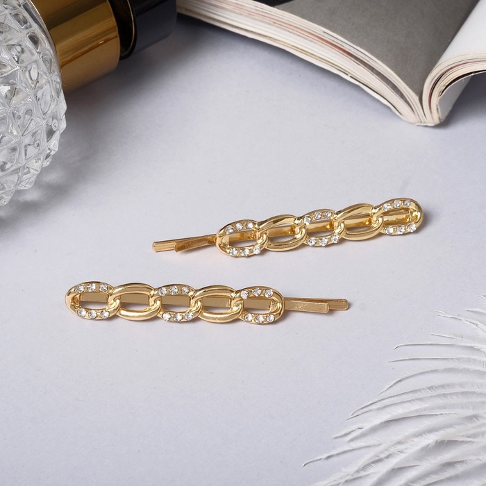 Невидимки для волос «Либерти», набор 2 шт., сияние петельки, 4.5 см, золото