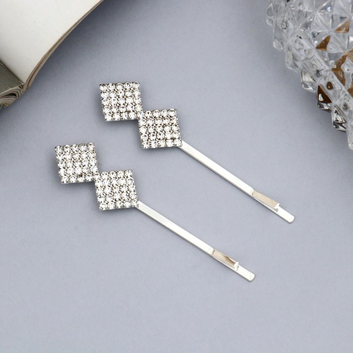 Невидимки для волос «Вивьен», набор 2 шт., ромбы, 5 см, серебро