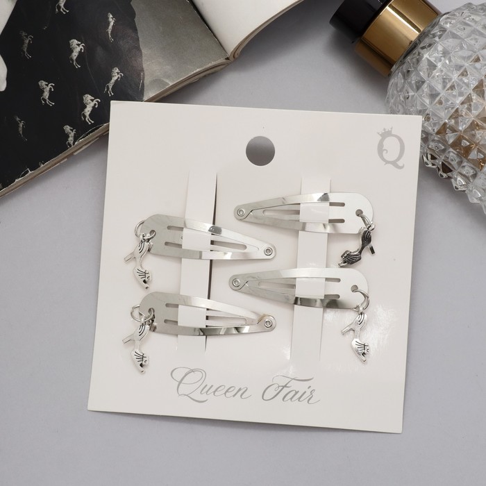 Невидимки для волос «Офелия», набор 4 шт., туфелька, 4.5 см, серебро