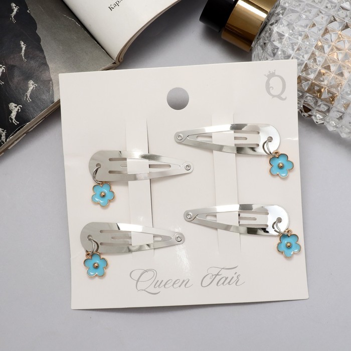 Невидимки для волос «Офелия», набор 4 шт., василёк, 4.5 см, серебро