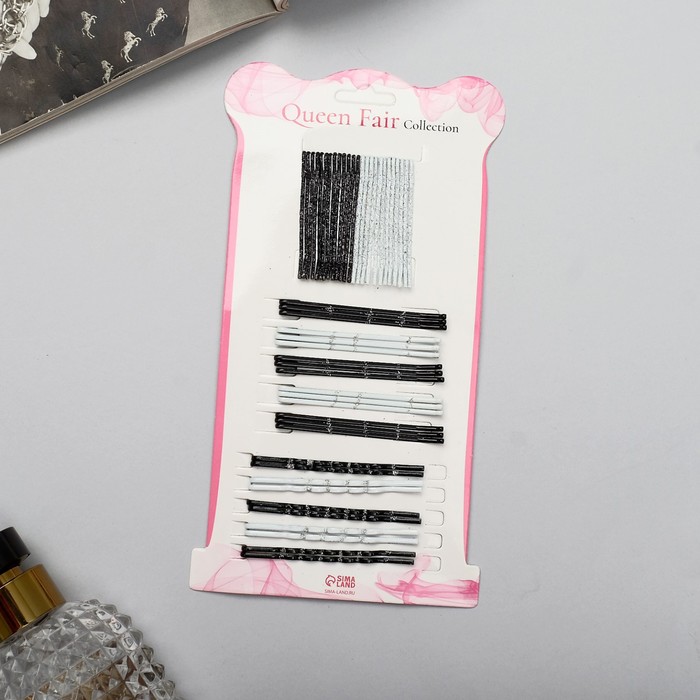 Невидимки для волос «Стиль», набор 12 шт., классика, 5 см, чёрные, белые