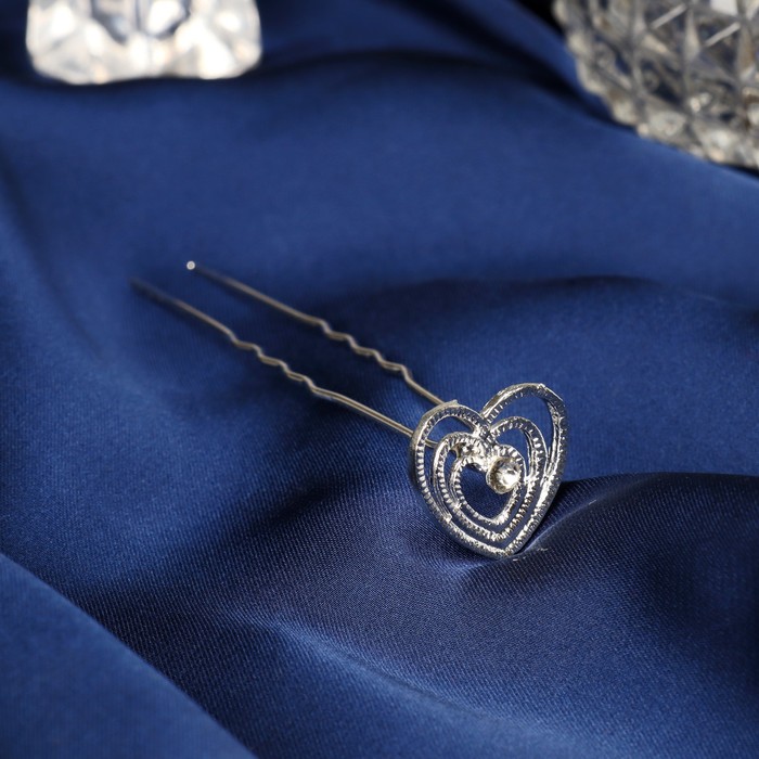 Шпилька для волос «Аврора», сердце, 1.4×6.5 см, серебро