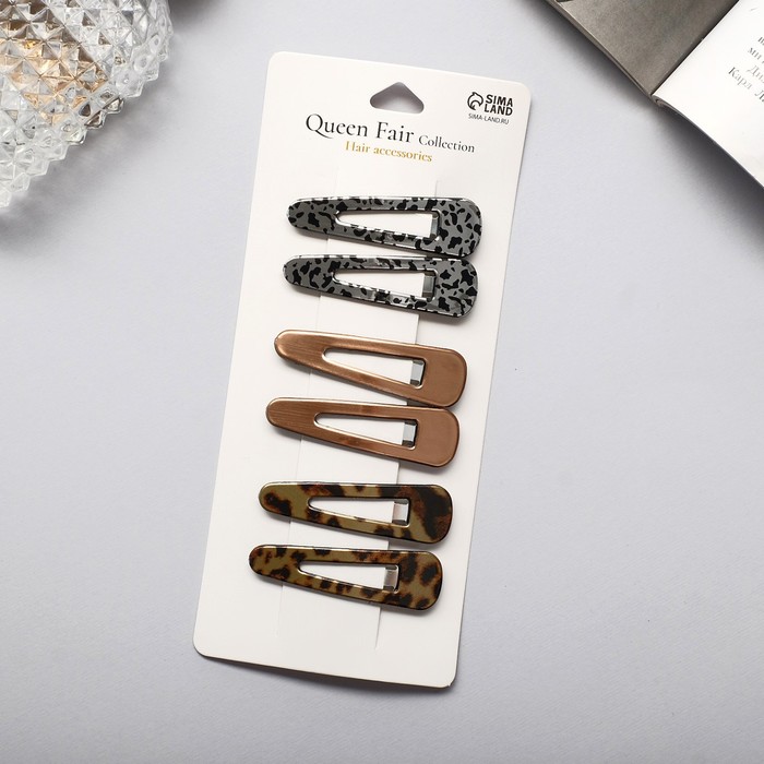 Невидимки для волос «Беатрис», набор 6 шт., лео, 5 см, золото