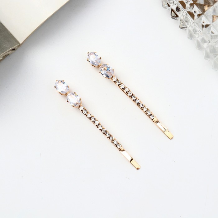 Невидимки для волос «Вивьен», набор 2 шт., камни сияние овалы, 5 см, золото