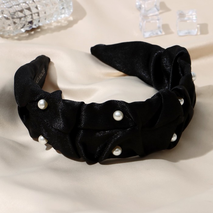 Ободок для волос «Юнона», бусинки, 5 см, чёрный