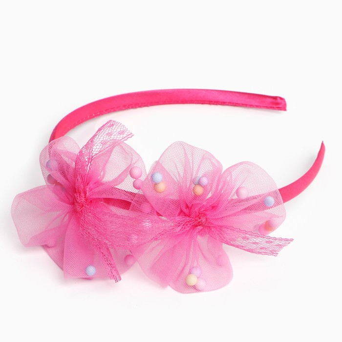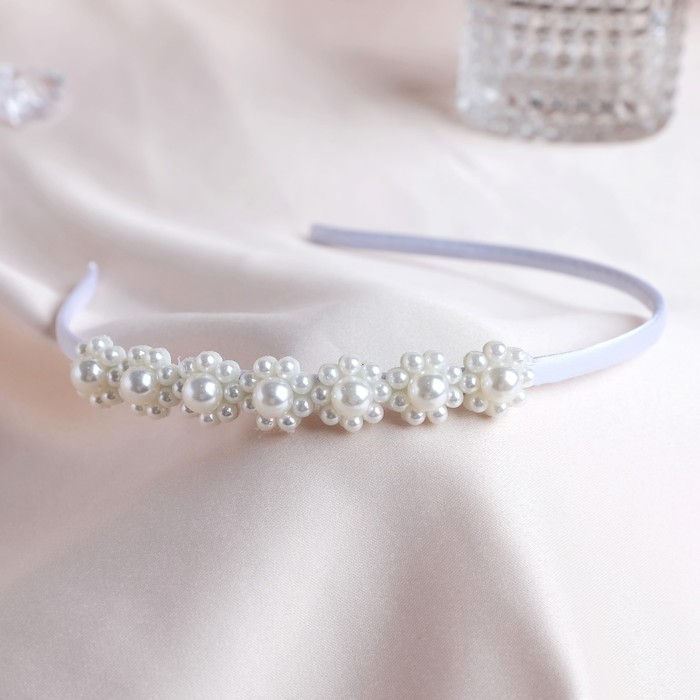 Ободок для волос «Бланш», бусины цветочки, 0.5 см, белый