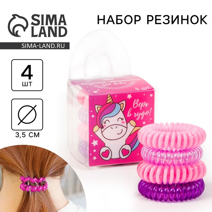Резинки для волос пружинки «Единорог», 4 шт., диаметр 3.5 см