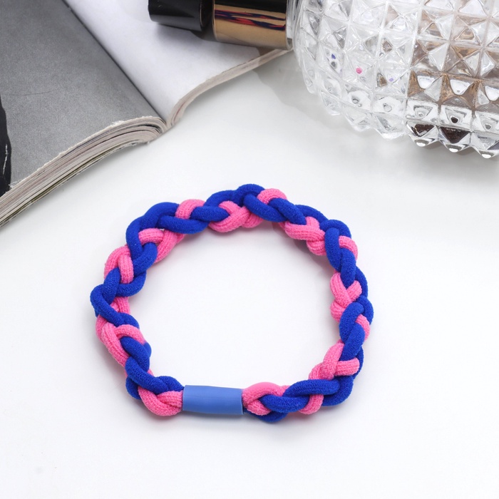 Резинка для волос «Спорт элит», двойное плетение, 5 см, розово-синяя
