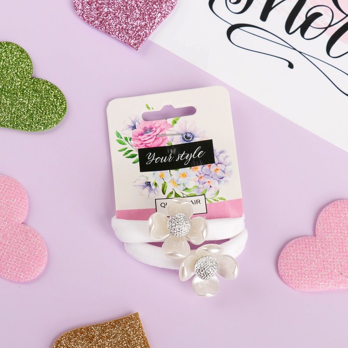 Резинки для волос «Белая купавка», набор 2 шт., белые