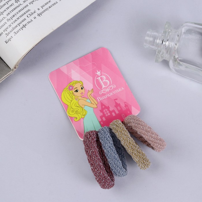 Резинки для волос «Махрушка», набор 4 шт., косичка блеск, 4 см
