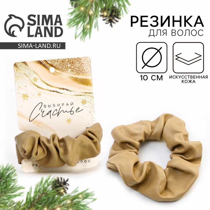 Резинка для волос новогодняя «Выбирай счастье», бежевая, d = 10 см