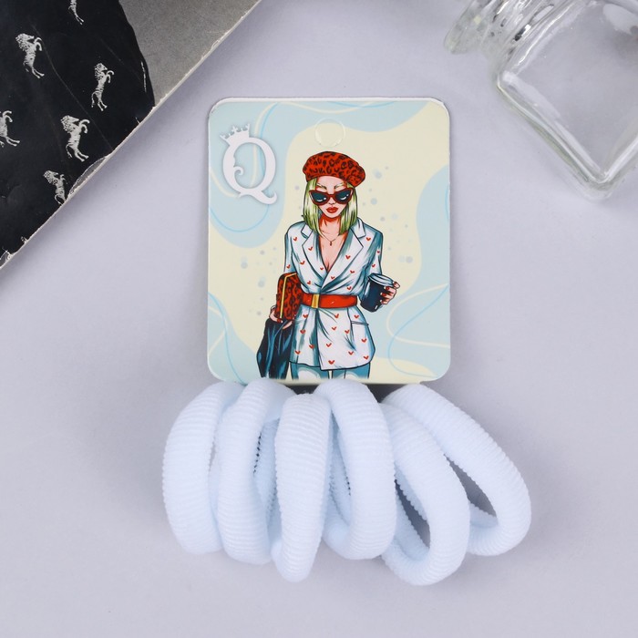 Резинки для волос «Кокетка», набор 6 шт., шарм, 4 см, белые