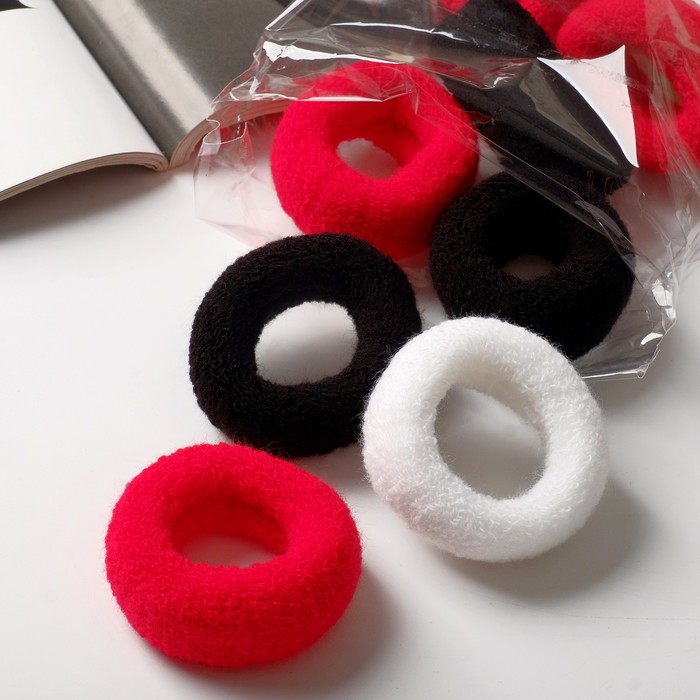 Резинки для волос «Махрушка», набор 6 шт., 4 см, белые, чёрные, красные