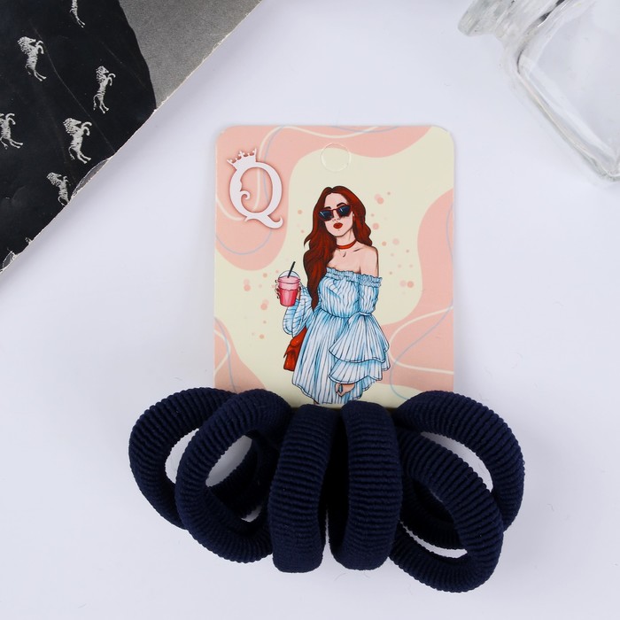 Резинки для волос «Кокетка», набор 6 шт., обаяние, 4 см, тёмно-синие