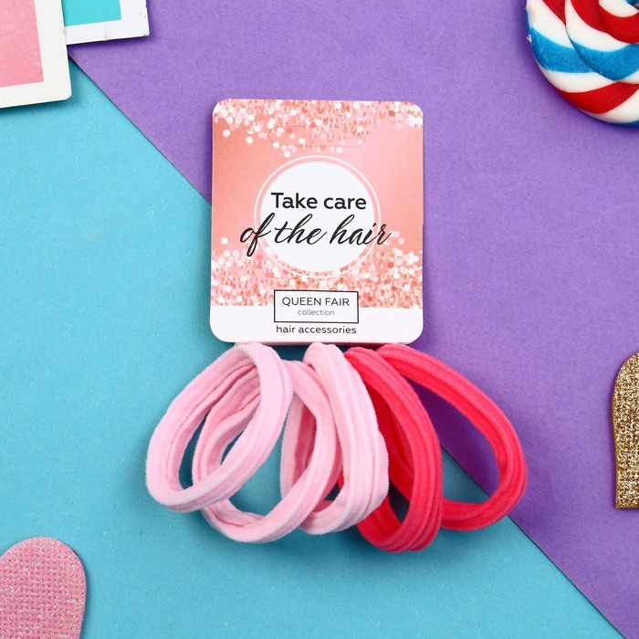 Резинки для волос «Спорт стайл», набор 5 шт., линии, 4 см, розовые