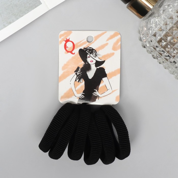 Резинки для волос «Амелия», набор 6 шт., шик, 4 см, чёрные