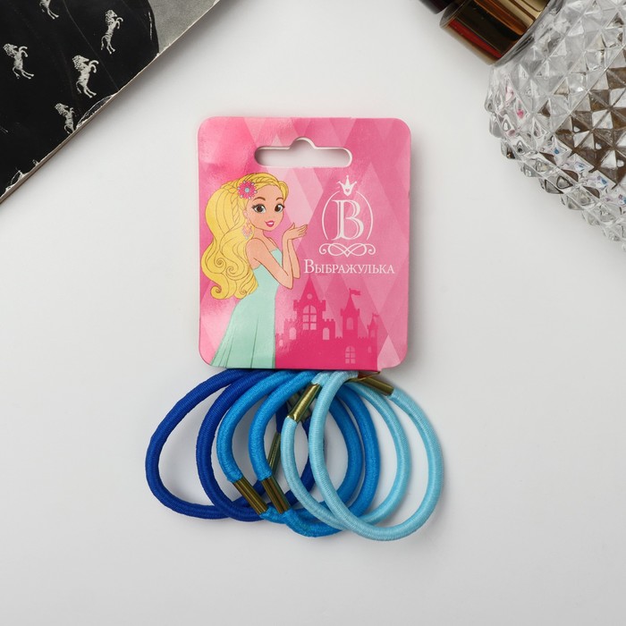 Резинка для волос "Цветочный орнамент" (набор 6 шт) незабудки