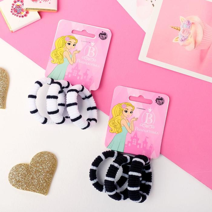 Резинки для волос «Махрушка», набор 3 шт., полосатик, 4 см, чёрно-белые