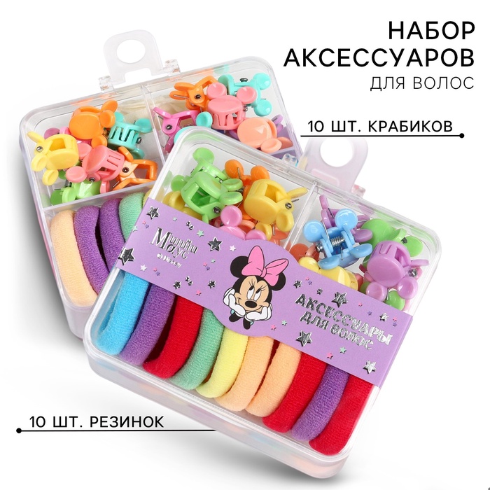 Набор подарочный, резинка для волос 10 шт, заколка крабик 10 шт, Минни Маус